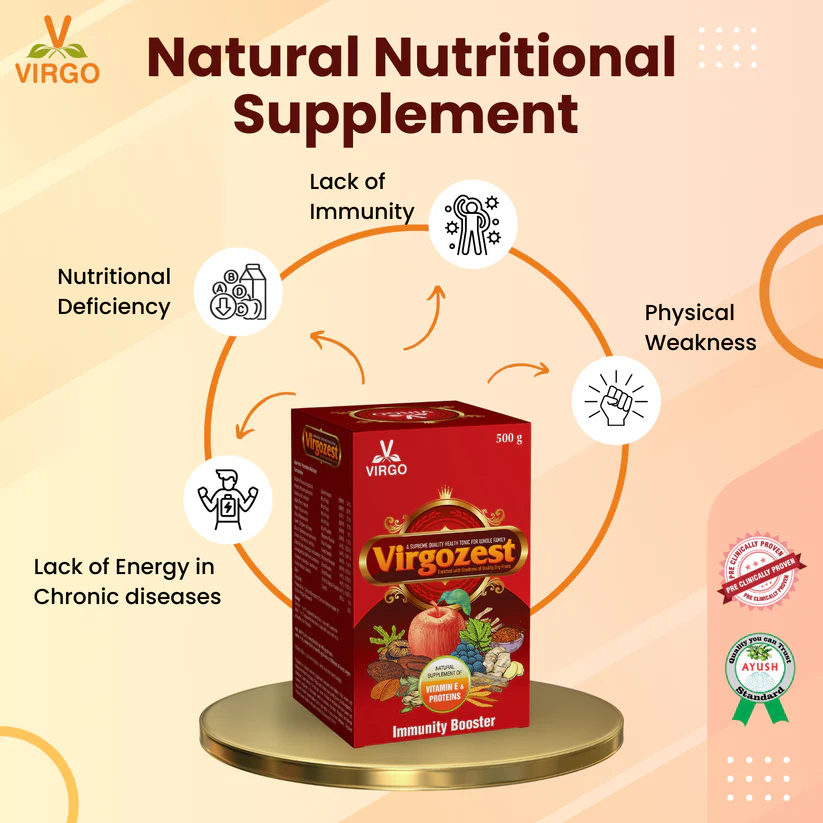 Virgozest is a Natural Supplement, Enriched with Premium quality Almond, Pistachio, Fig and Dates with Fresh Apple and Dried Black Grapes blended with Amazing herbs like Ashwagandha, Shatavari, Shwet moosali, Sunthi, Chironji and Kesar.